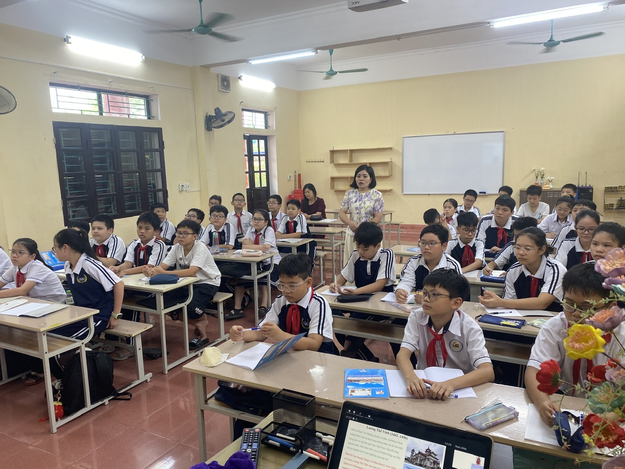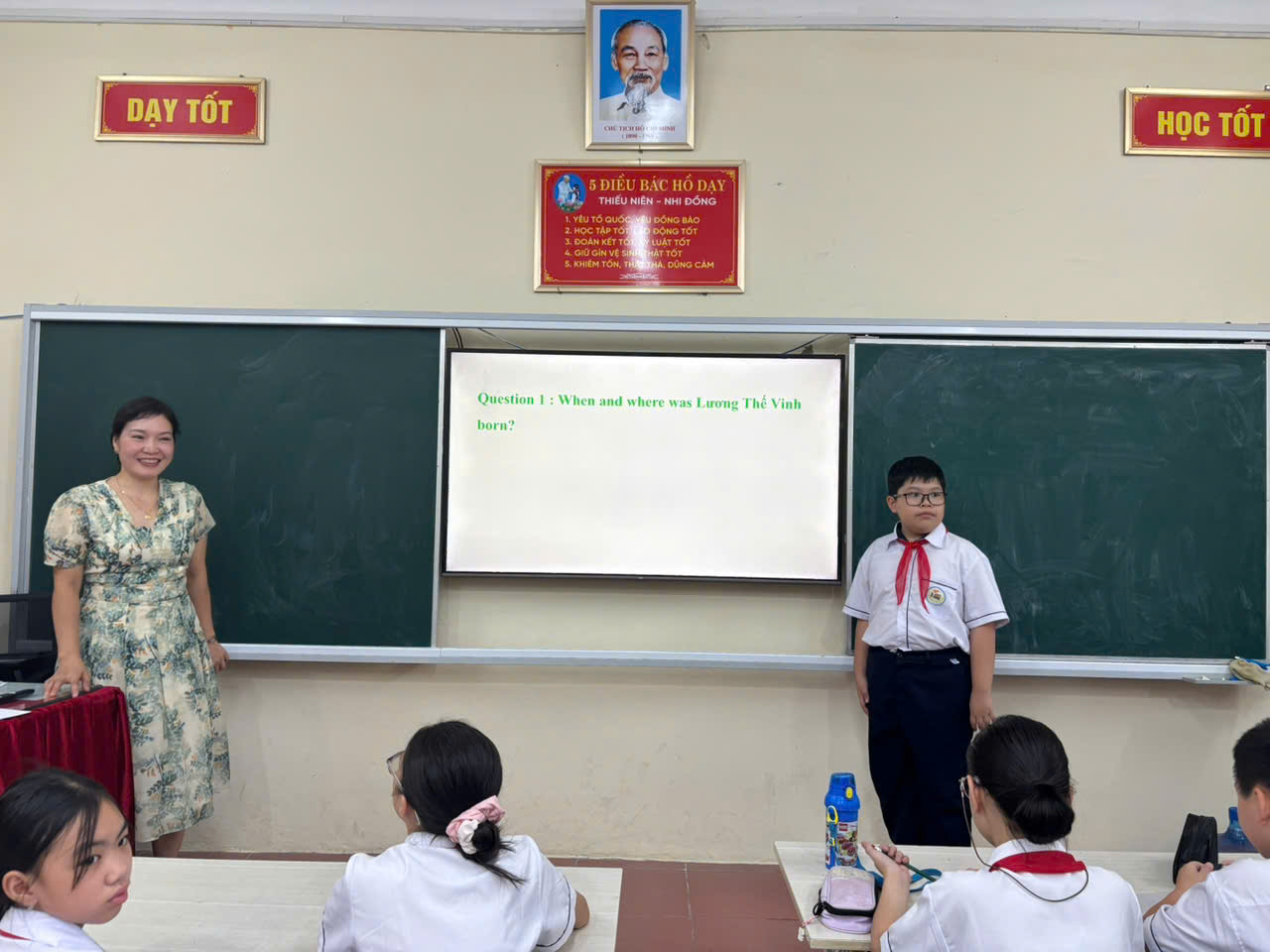 Trong buổi sinh hoạt, học sinh không chỉ nghe giới thiệu mà còn tham gia trò chơi hỏi – đáp bằng Tiếng Anh xoay quanh cuộc đời và đóng góp của Lương Thế Vinh. Các nhóm thảo luận sôi nổi, thực hành kỹ năng thuyết trình song ngữ, đồng thời rèn luyện khả năng làm việc nhóm và tư duy phản biện. Những khoảnh khắc vui nhộn từ trò chơi, phần trình bày sáng tạo bằng tiếng Anh và các câu hỏi mở rộng về triều Lê đã giúp buổi sinh hoạt thêm sinh động và giàu ý nghĩa.