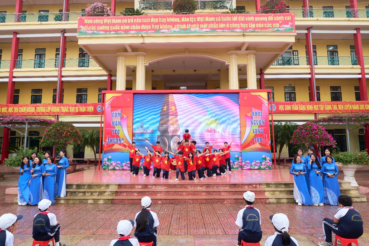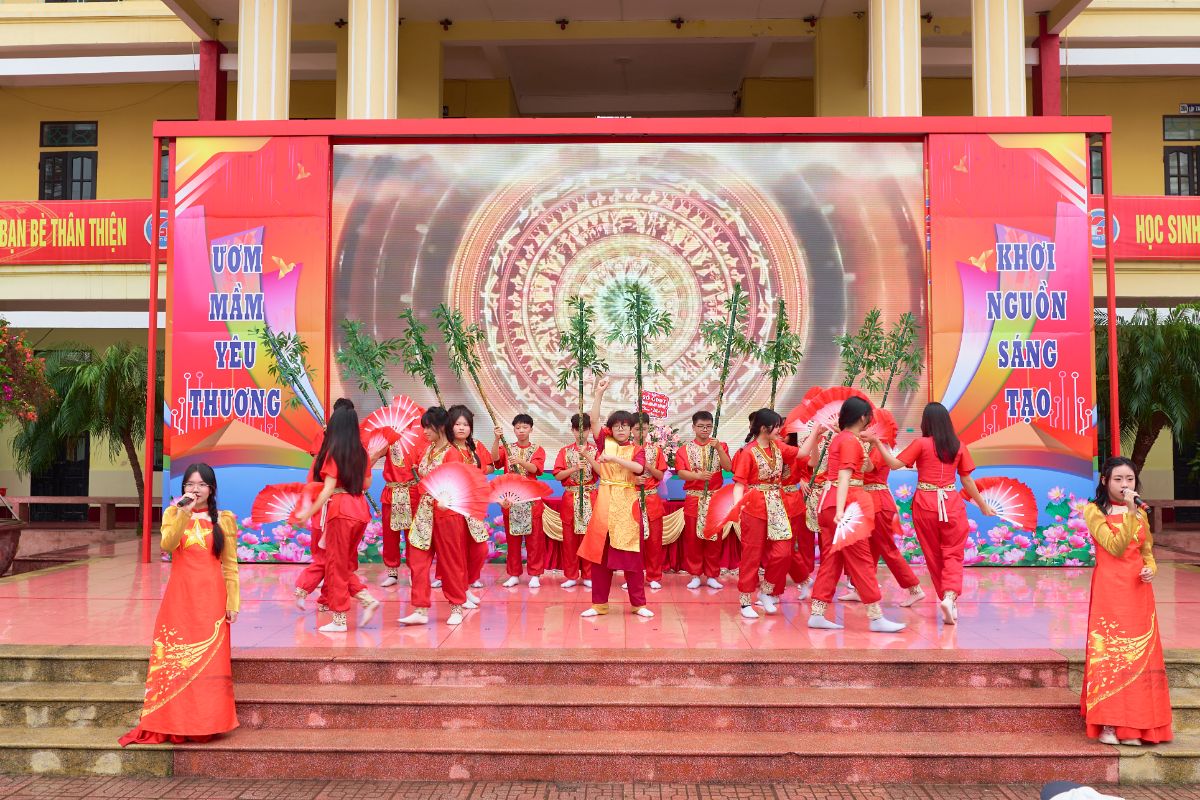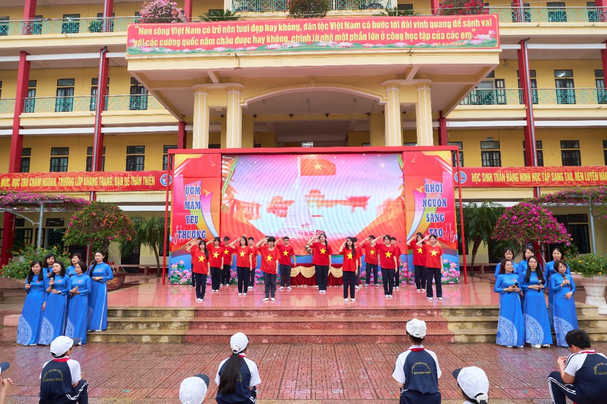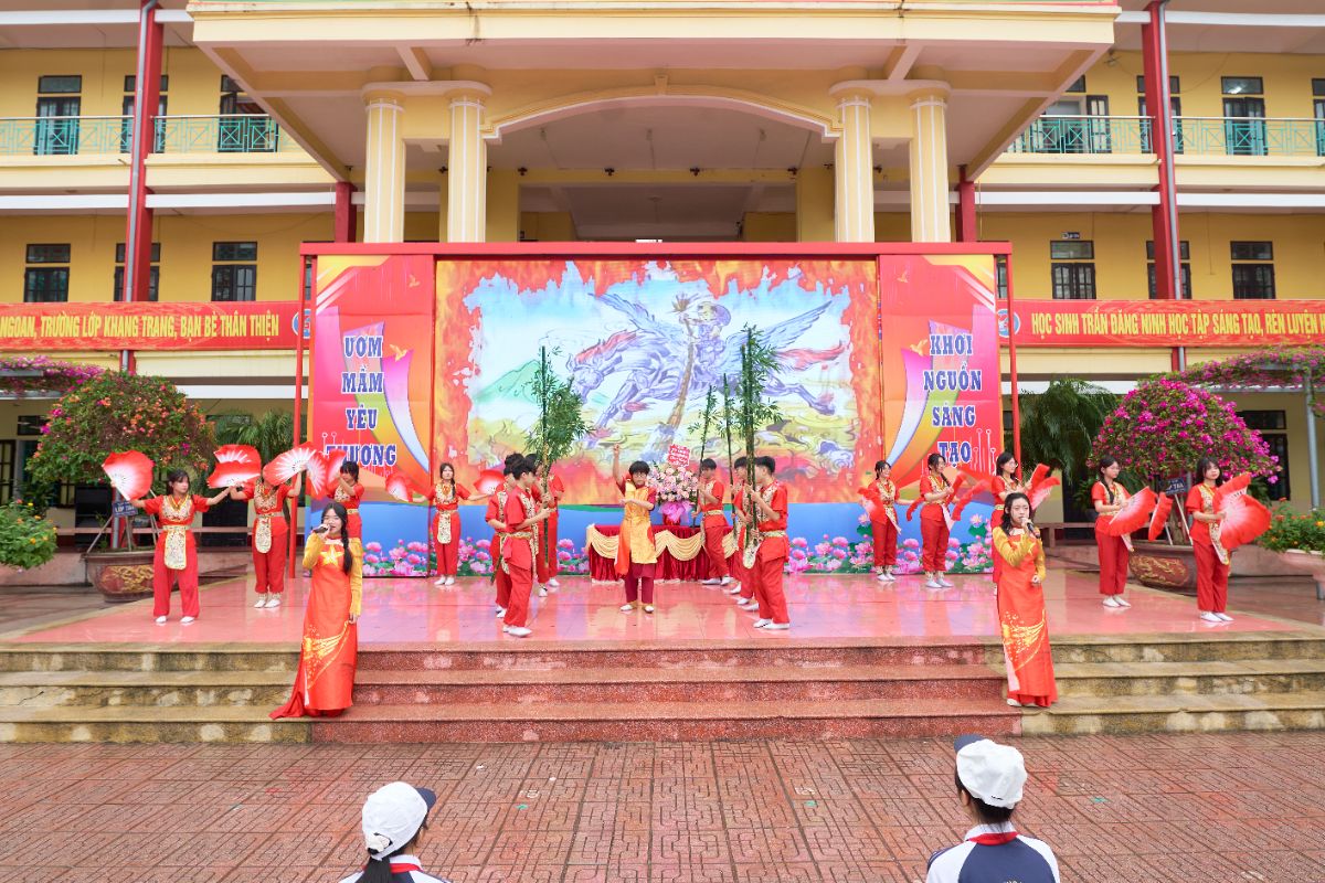 Mở đầu chương trình là các tiết mục văn nghệ hết sức sôi động, tự hào, đầy nhiệt huyết của tuổi trẻ do các em học sinh và các thầy cô giáo trong chi đoàn giáo viên thể hiện cùng bài quyền 35 động tác VOVINAM. Điểm nhấn của chương trình chính là màn đồng diễn võ nhạc Vovinam của các em học sinh. Với sự chuẩn bị công phu, luyện tập nghiêm túc, các em sẽ mang đến: Những động tác võ thuật dứt khoát, mạnh mẽ – Sự phối hợp đồng đều, nhịp nhàng – Tinh thần kỷ luật cao và khí thế hào hùng của tuổi trẻ Mỗi động tác là một biểu hiện của ý chí, Mỗi nhịp bước là một lời khẳng định sức mạnh và bản lĩnh học sinh Việt Nam. Thông qua màn trình diễn, các em muốn gửi gắm thông điệp: “Khỏe để học tập – Khỏe để rèn luyện – Khỏe để xây dựng và bảo vệ Tổ quốc”