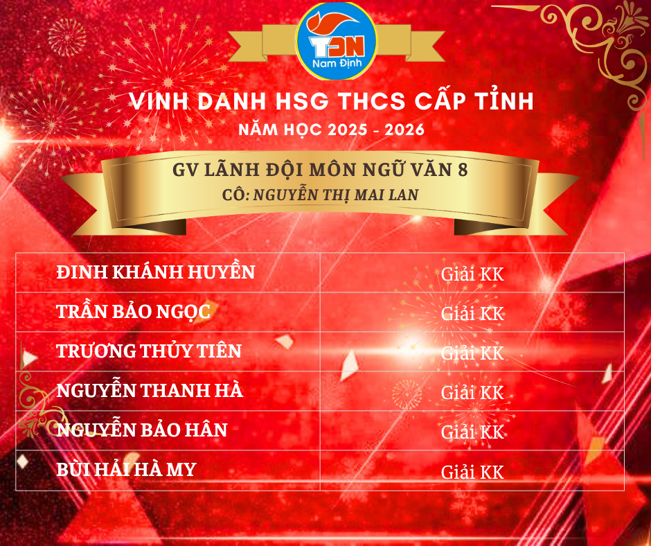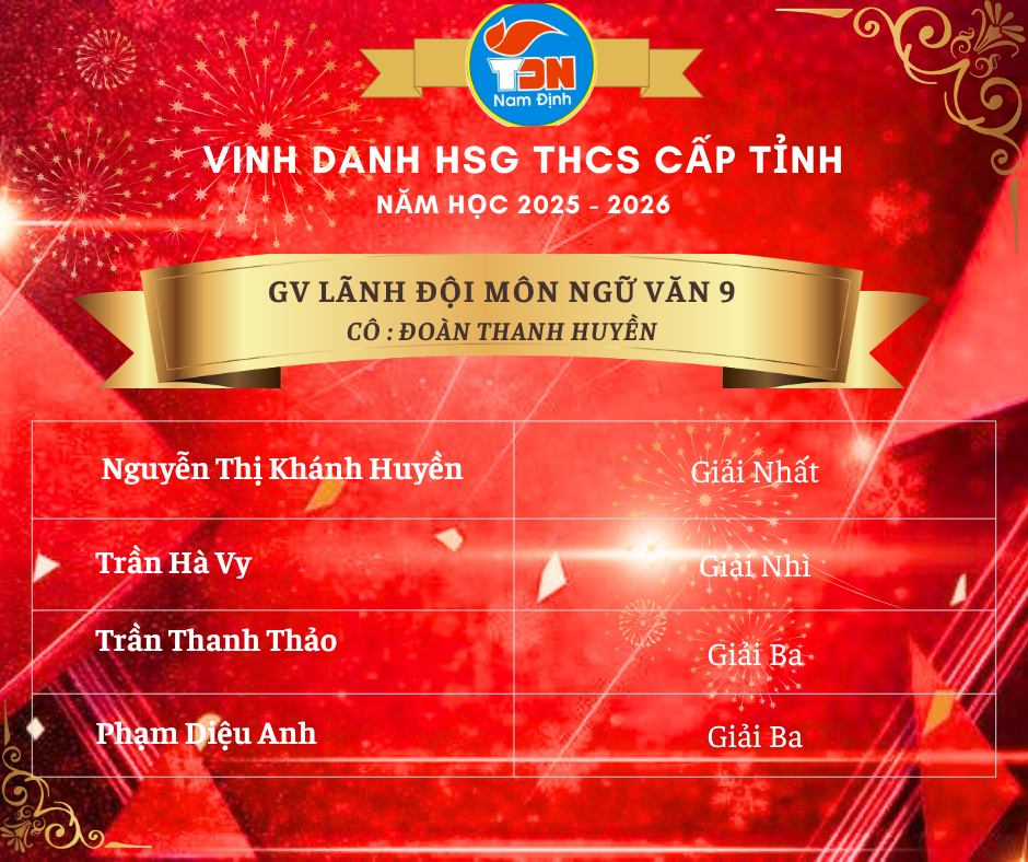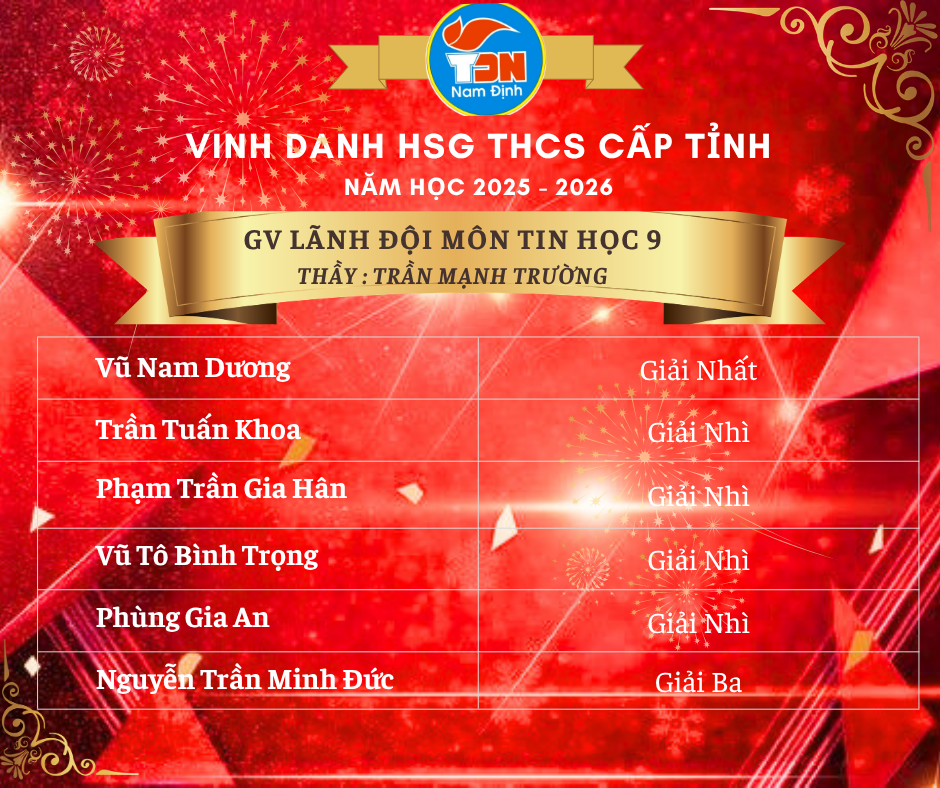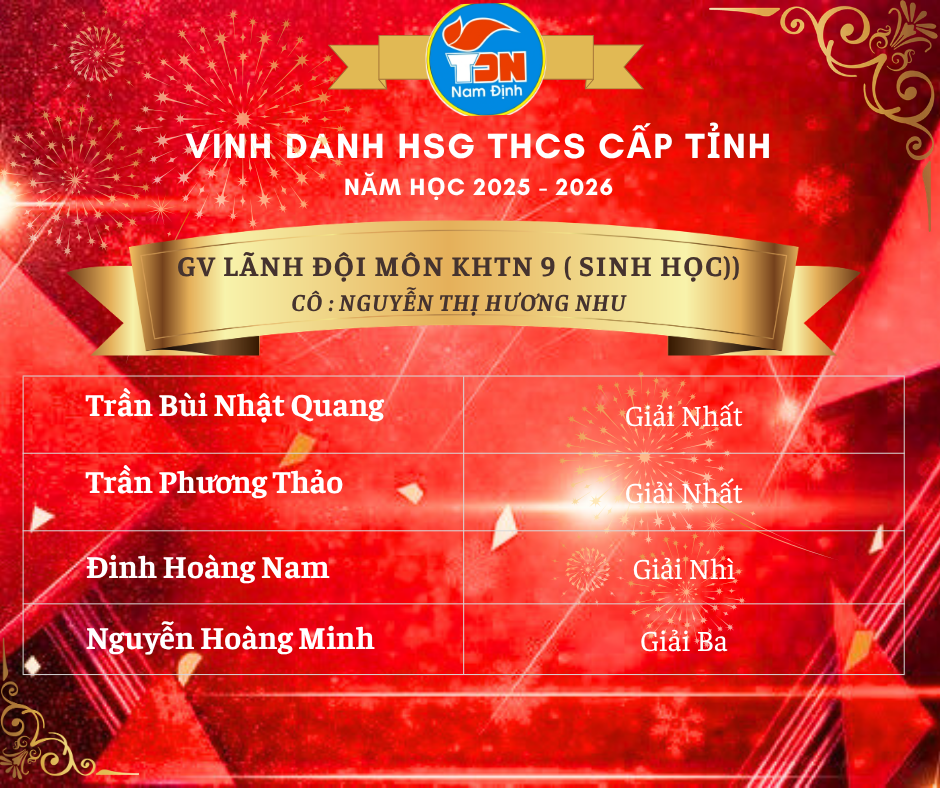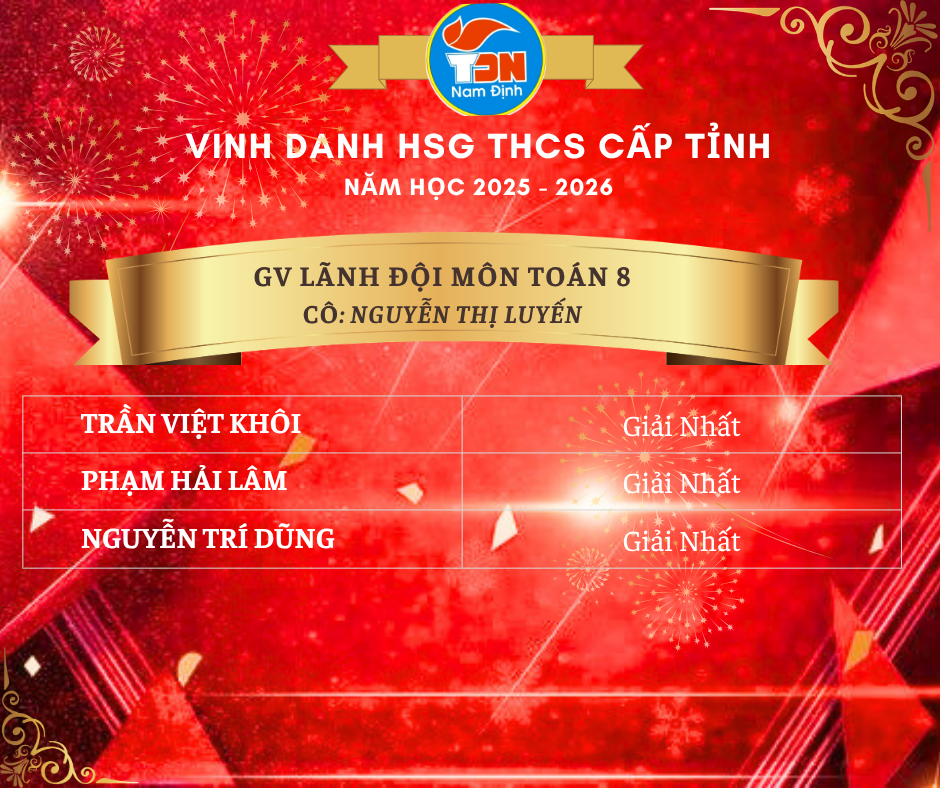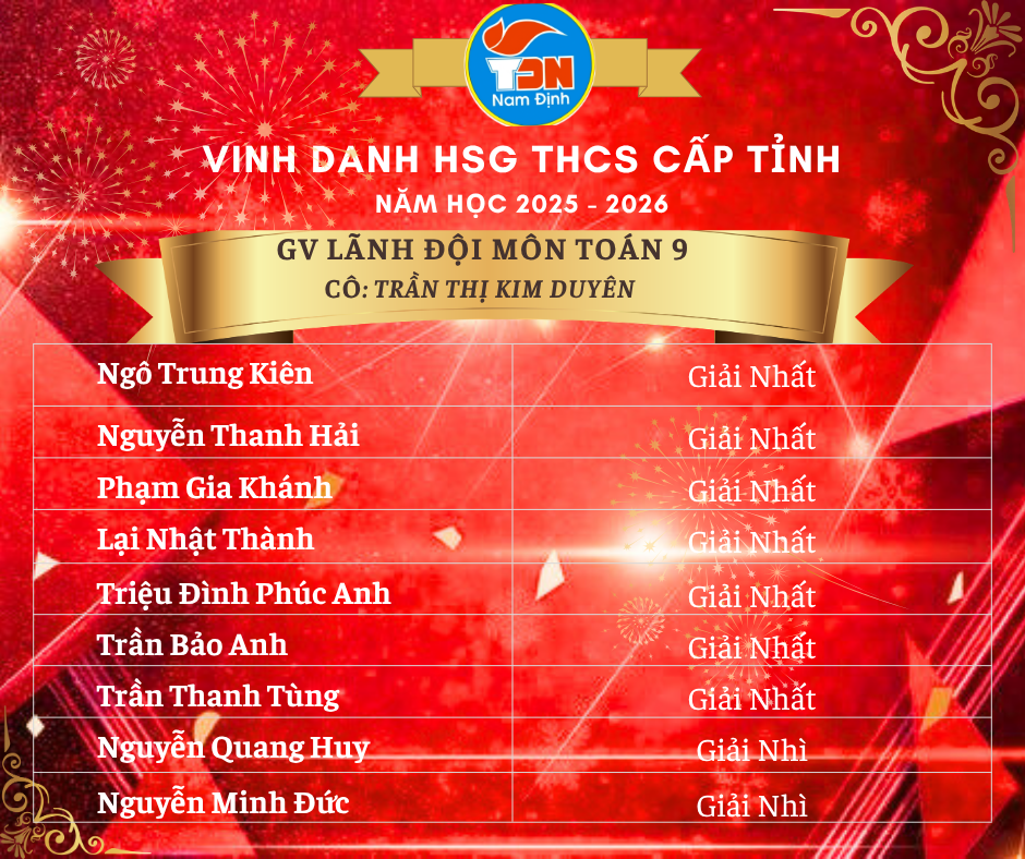 TRƯỜNG THCS TRẦN ĐĂNG NINH VINH DANH CÁC THẦY CÔ GIÁO VÀ CÁC EM HỌC SINH ĐẠT THÀNH TÍCH XUẤT SẮC TRONG KÌ THI HSG TỈNH CẤP THCS NĂM HỌC 2025-2026