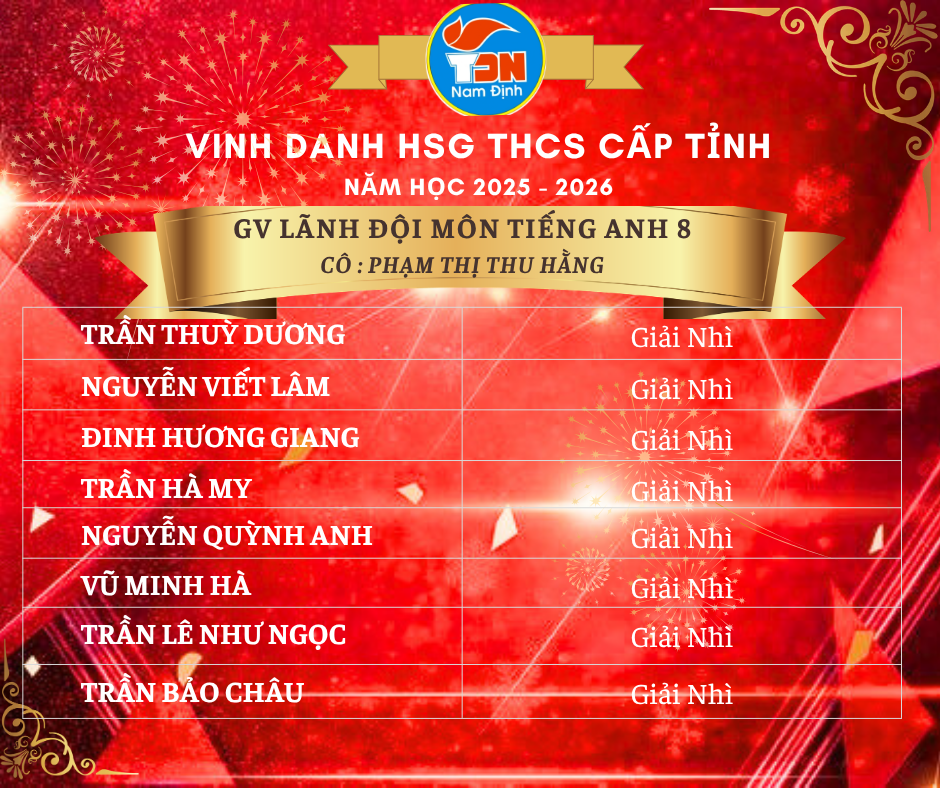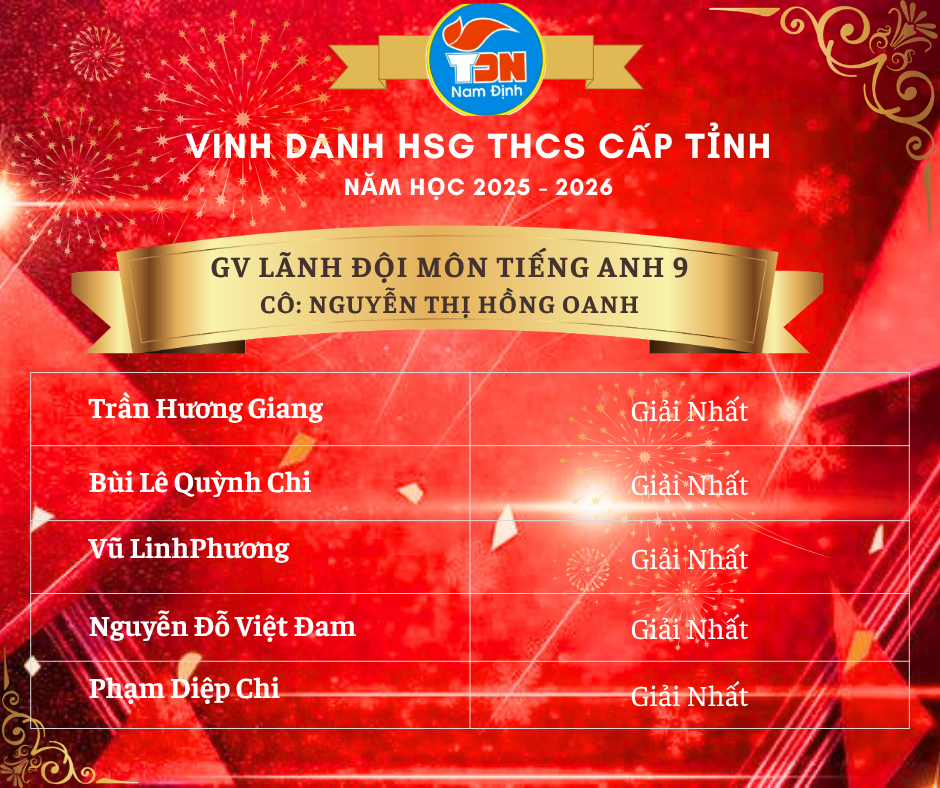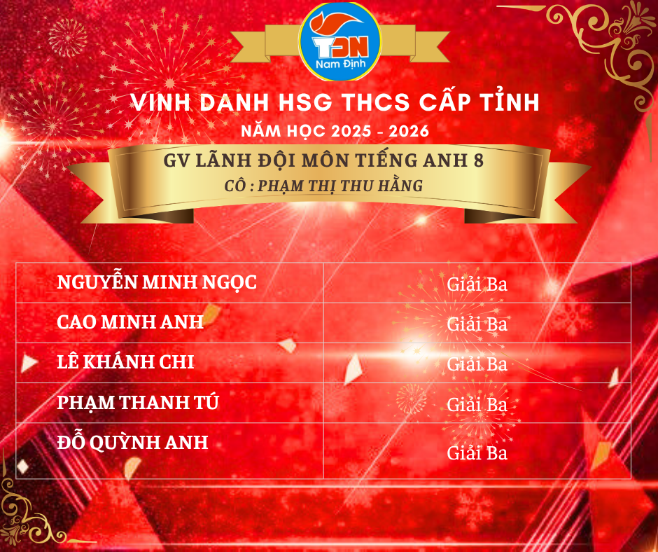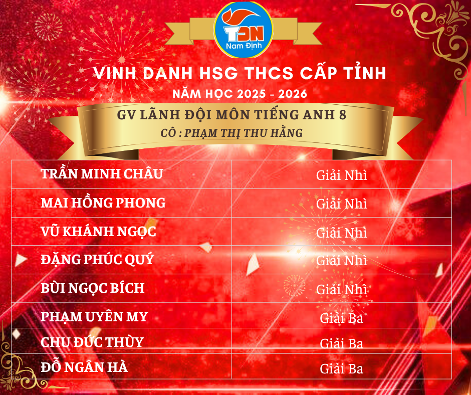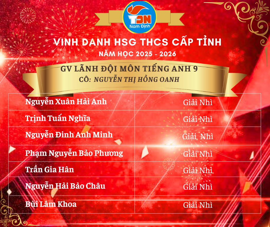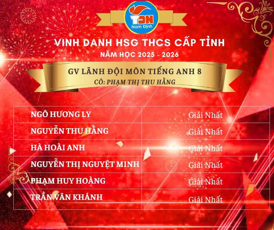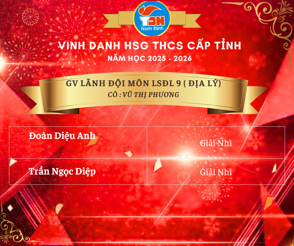 TRƯỜNG THCS TRẦN ĐĂNG NINH VINH DANH CÁC THẦY CÔ GIÁO VÀ CÁC EM HỌC SINH ĐẠT THÀNH TÍCH XUẤT SẮC TRONG KÌ THI HSG TỈNH CẤP THCS NĂM HỌC 2025-2026